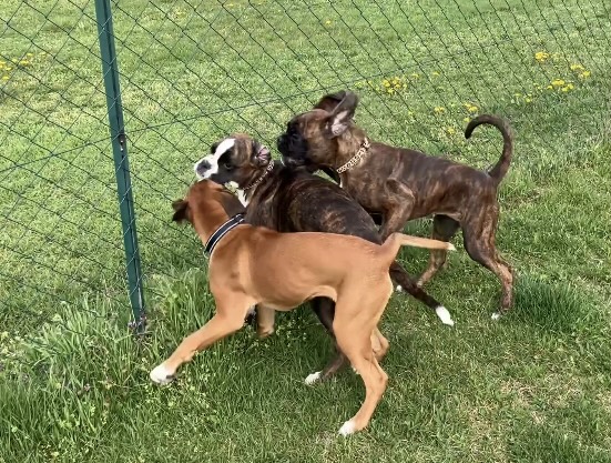 Dixie hatte wieder ‘das große Los‘ gezogen, denn für ein Training haben wir beide noch jede Menge Zeit! Aber eine Gelegenheit mit den Schwestern zu toben, kommt nicht mehr so oft und geht natürlich vor! Um etwaigen ‘Streitereien vorzubeugen‘, war Akira mit von der Partie und sorgte auch – wenn notwendig – für ‚gutes Benehmen‘!