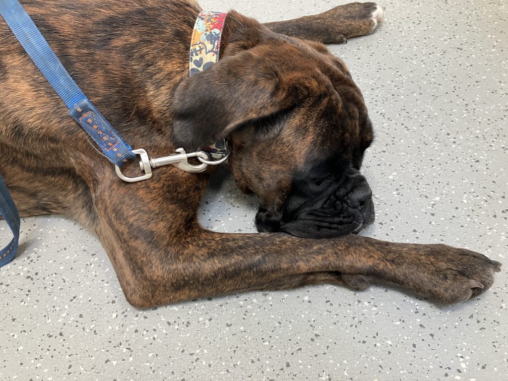 Danach ,fehlte‘ mir noch, dass Dixie plötzlich eine Woche vor Heiligabend Durchfall hatte – hat mich aber zuerst nicht sonderlich beunruhigt, da so etwas bei Hunden vorkommen kann. Also begann ich gleich Schonkost zu kochen – als ihr aber 2 Tage später beim Aufstehen die Hinterbeine einsackten und sie nicht mehr aufstehen konnte, wurde ich doch etwas panisch und fuhr um 2.00 Uhr nachts mit ihr in die Notaufnahme des VetKlinikums. Fazit: wir verbrachten die halbe Nacht und nachdem keine Besserung eintraf, auch den nächsten Tag in der Klinik. Eine Diagnose konnte noch nicht wirklich gestellt werden .